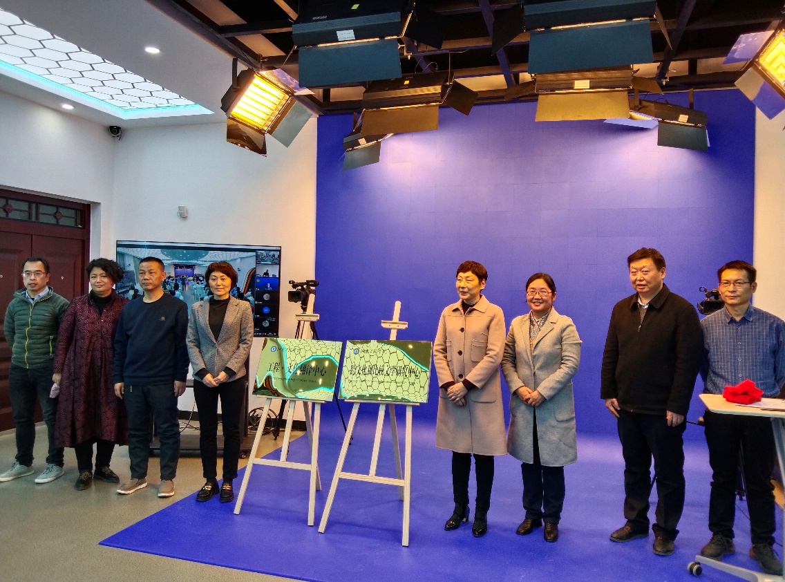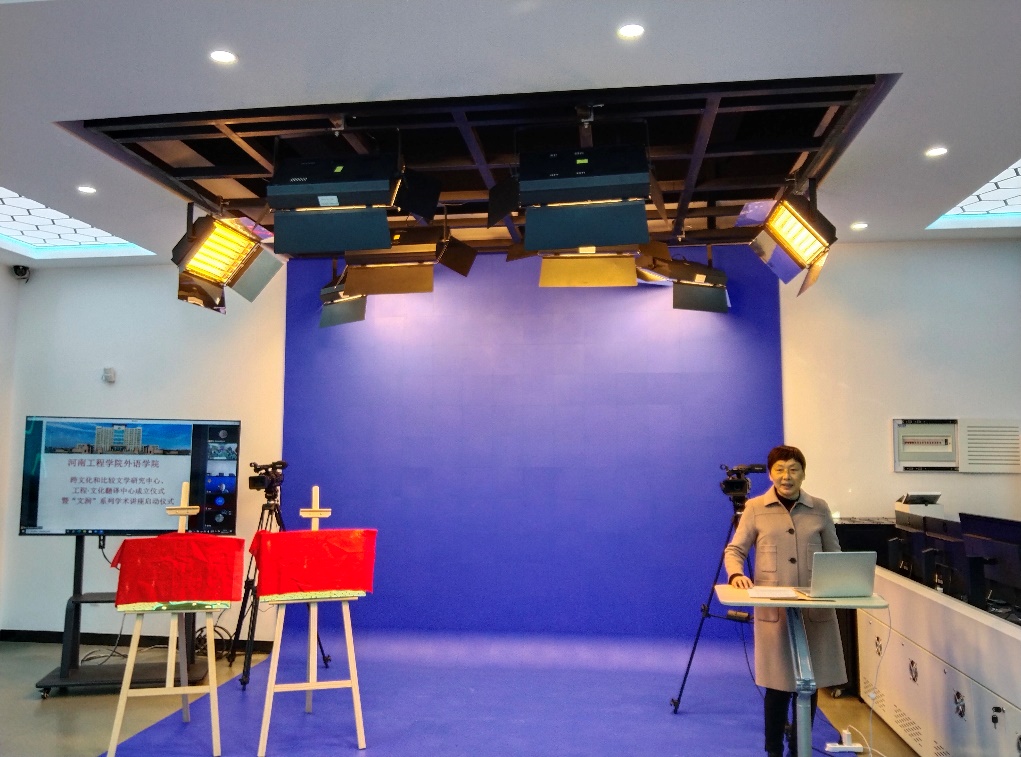 11月25日下午,我校外语学院跨文化和比较文学研究中心、工程·文化翻译研究中心揭牌仪式在西校区外语学院融媒体4K虚拟情景语音室举行。揭牌仪式采取线上线下相结合的形式进行,副校长贺金凤出席会议,社科处王晓俊,外语学院领导班子、学院学术委员会全体成员及部分师生代表参加线下揭牌仪式。