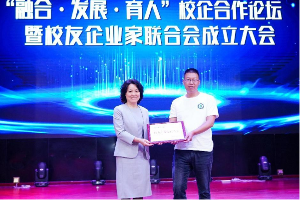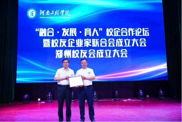 校长李利英向校友企业家联合会授牌,副校长张瑞林向郑州校友会授牌。