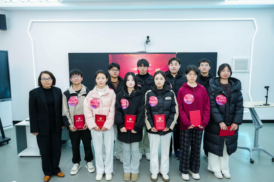 外语学院副院长王辉宣读了大赛获奖学生名单。获得大赛特等奖、一等奖和二等奖的10位同学同时被授予2024安博官方(中国)总部“十大校园英语词达人”荣誉称号。与会领导为获奖同学颁发荣誉证书并合影留念。