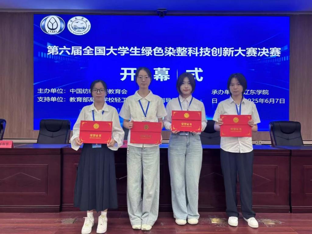 6月8日,由中国纺织服装教育学会主办、教育部高等学校轻工类专业教学指导委员会支持、辽东学院承办的第六届全国大学生绿色染整创新大赛圆满落幕。我校化工与印染工程学院学生表现出色,共斩获本科生组一等奖1项、二等奖3项、三等奖8项(本次大赛未设特等奖,一等奖为最高奖项),充分展现了学院在创新人才培养和学科竞赛领域的突出实力。