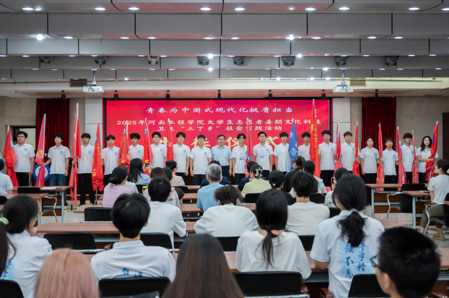 出征仪式在庄严的国歌中拉开帷幕。会上,校团委书记许卫华宣读了《关于开展2025年安博官方(中国)总部大学生志愿者暑期文化科技卫生“三下乡”社会实践活动的通知》,并从整体工作安排、文件解读和工作要求三个方面做了详细介绍。