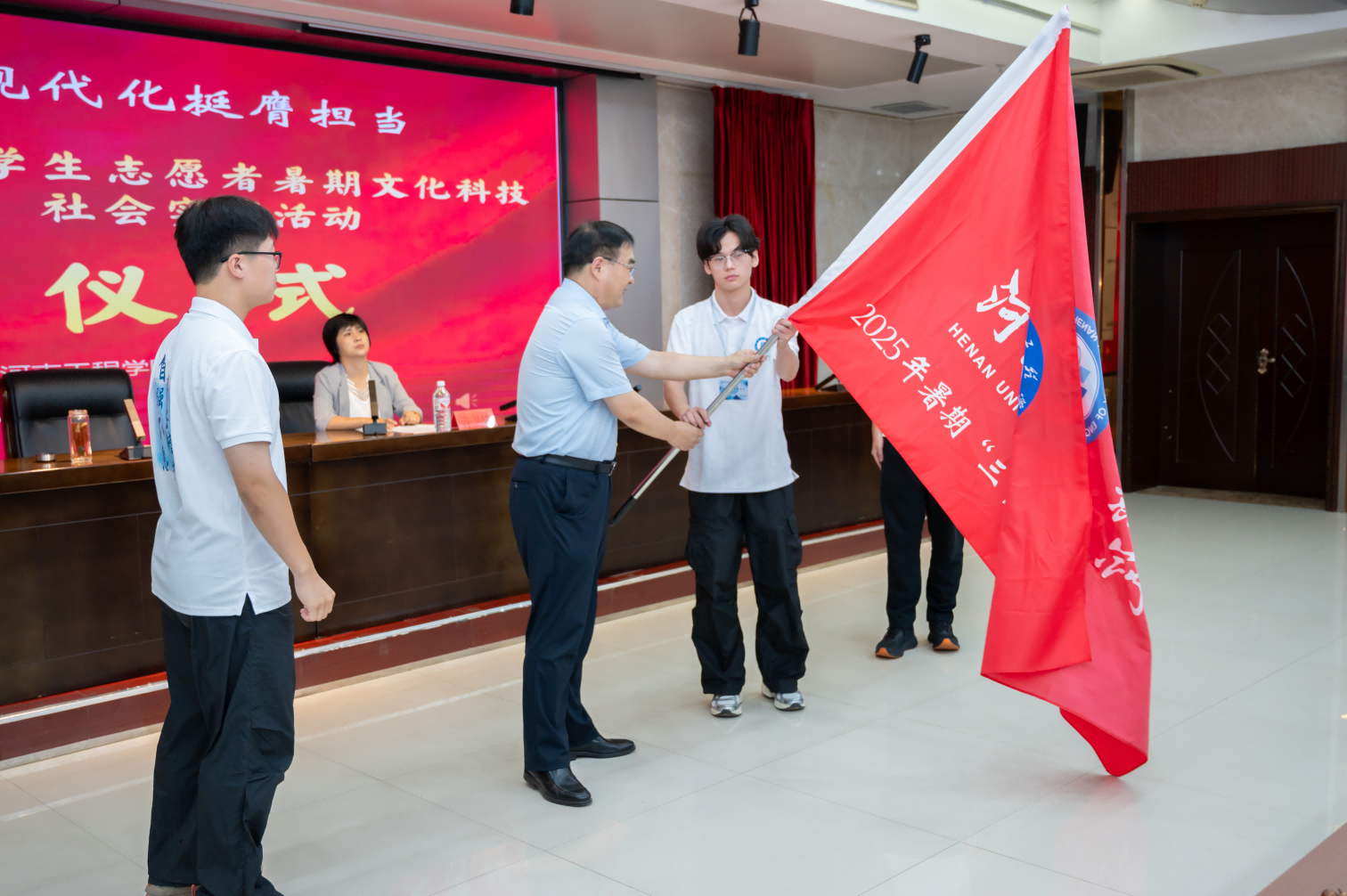 刘超为社会实践团队授旗,各代表队上台合影留念。