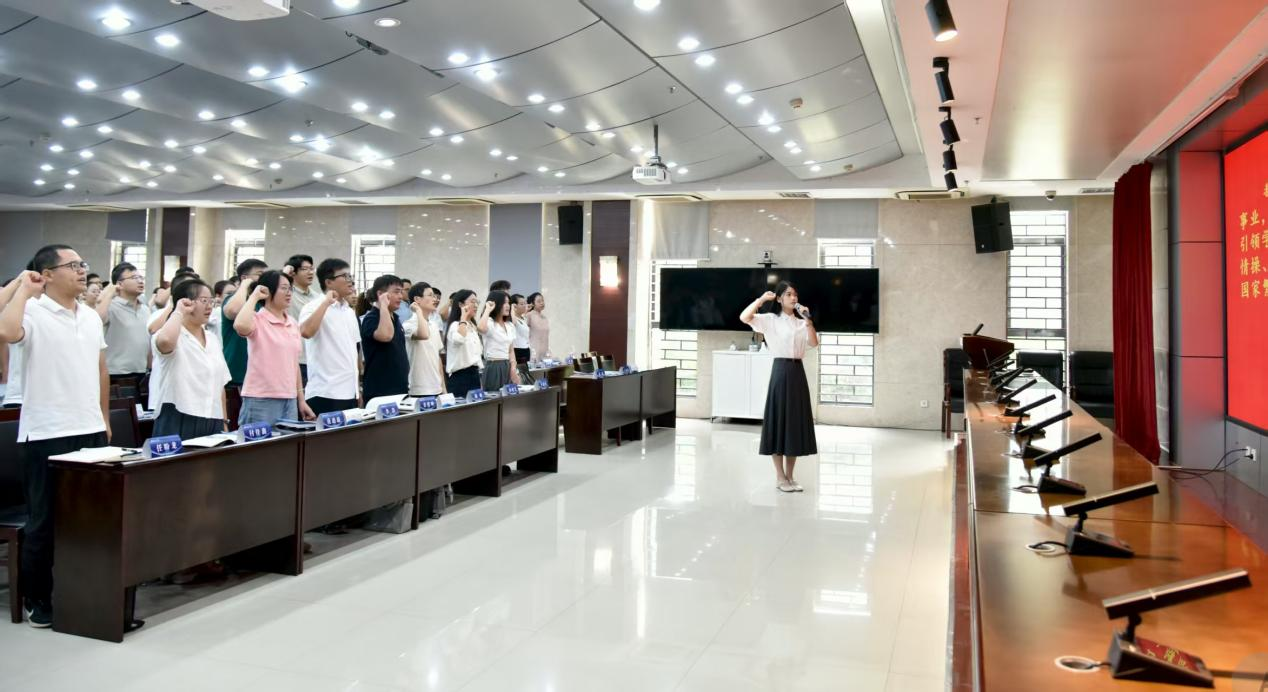 开班仪式在雄壮的国歌声中拉开序幕。魏涛介绍了本次培训的目的意义、内容设计及培训要求。李威在开班仪式上发表讲话,他指出,青年教师队伍是学校发展的重要力量,各位老师要深刻理解学校的发展定位与战略,把个人成长融入学校发展大局;要以师德师风立身,立德树人,为人师表;要不断提升教学能力,积极运用现代教育理念和方法,打造高质量课堂;要强化科研和学习能力,在推动学科发展、服务社会需求中实现自身价值。开班仪式上,各位新入职老师进行了入职宣誓。