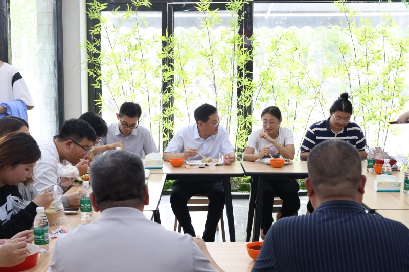 解伟走进餐厅后查看了档口饭菜价格和质量,随后与同学们面对面交流。他关切地询问同学们食宿等生活及学习等方面的状况,认真听取同学们反馈的各方面信息。他勉励同学们要坚定理想信念,始终听党话、跟党走,立志做有理想、敢担当、能吃苦、肯奋斗的新时代好青年;要注重自身素质提升,在读书学习上多下功夫,多参加科技文化等活动,加强实践能力培养,促进德智体美劳全面发展;要珍惜大学美好时光,积极应对生活中的压力和困难,始终保持乐观心态,与老师、同学建立良好的关系,养成良好的生活习惯。