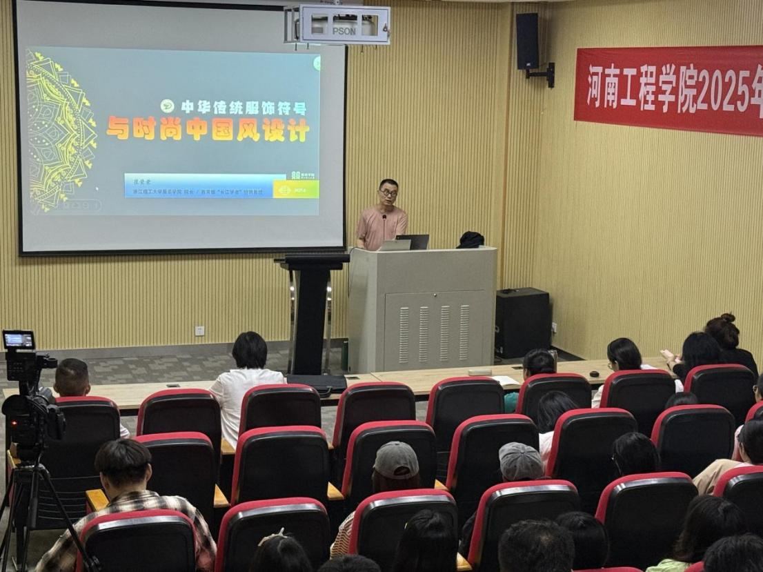 下午,崔荣荣在8号楼报告厅做题为“中华传统服饰符号与时尚中国风设计”的学术分享,由服装学院书记潘景果主持,全校100多名师生参加此次学术报告会。