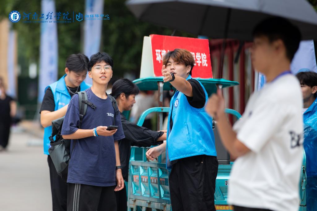 众多师生志愿者穿梭在校园各个角落,协助搬运行李、指引路线、答疑解惑,他们热情周到、耐心细致的服务成为迎新工作中最动人的风景线。