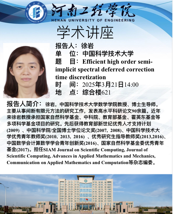 徐岩:Efficient high order semi- implicit spectral deferred correction time discretization