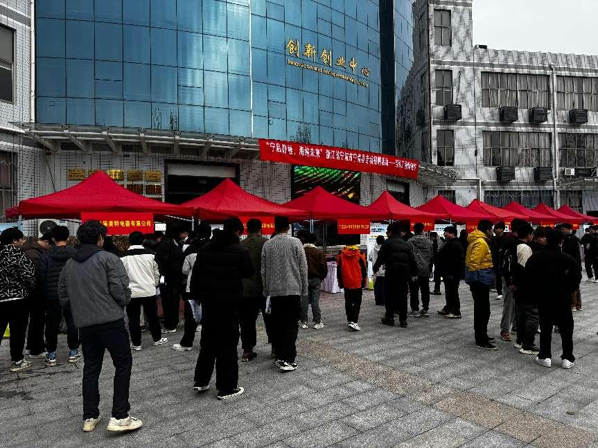 3月4日下午,浙江省宁波市宁海县人力资源和社会保障局携15家知名企业来我校举办专场招聘会,吸引约300余名毕业生到场求职,为我校毕业生提供优质岗位200余个,搭建起校企供需精准对接平台。
