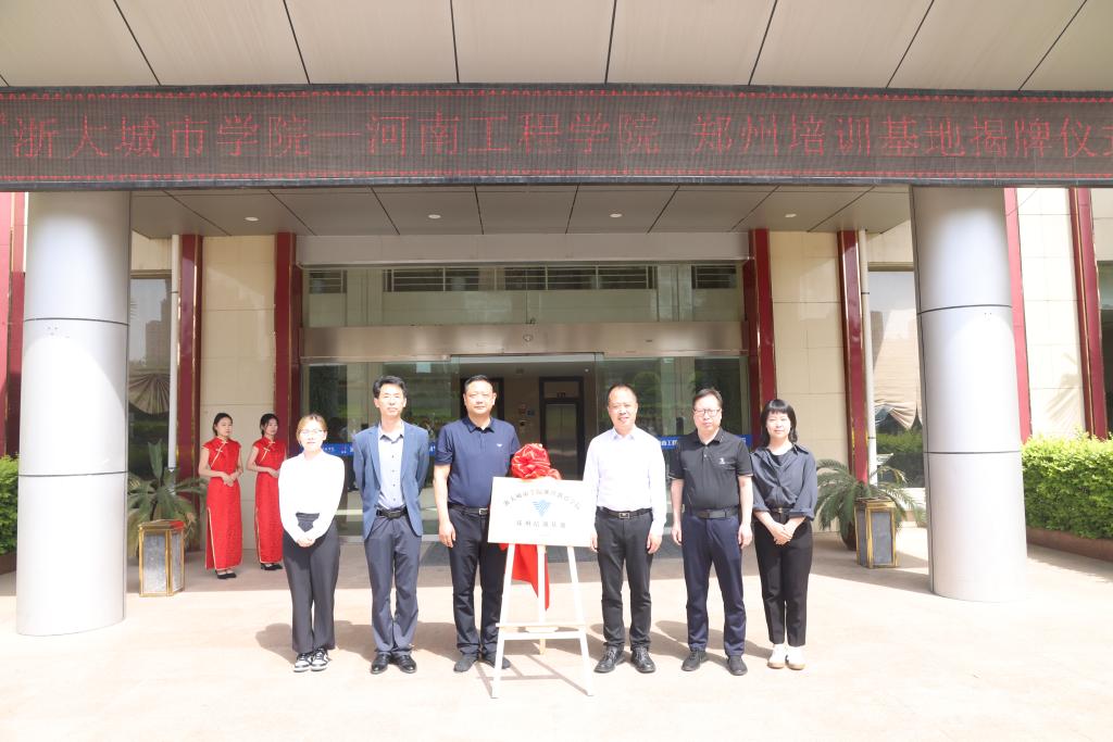 童晓明、周枫钧共同为“浙大城市学院继续教育学院郑州培训基地”揭牌。活动期间,童晓明一行考察了我校培训学院的办学场地及设施。